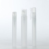 • This translucent frosted perfume bottle with a pump is made of polypropylene. It is designed to package perfume bottles (small samples) or is a breath freshener and possibly other liquids.