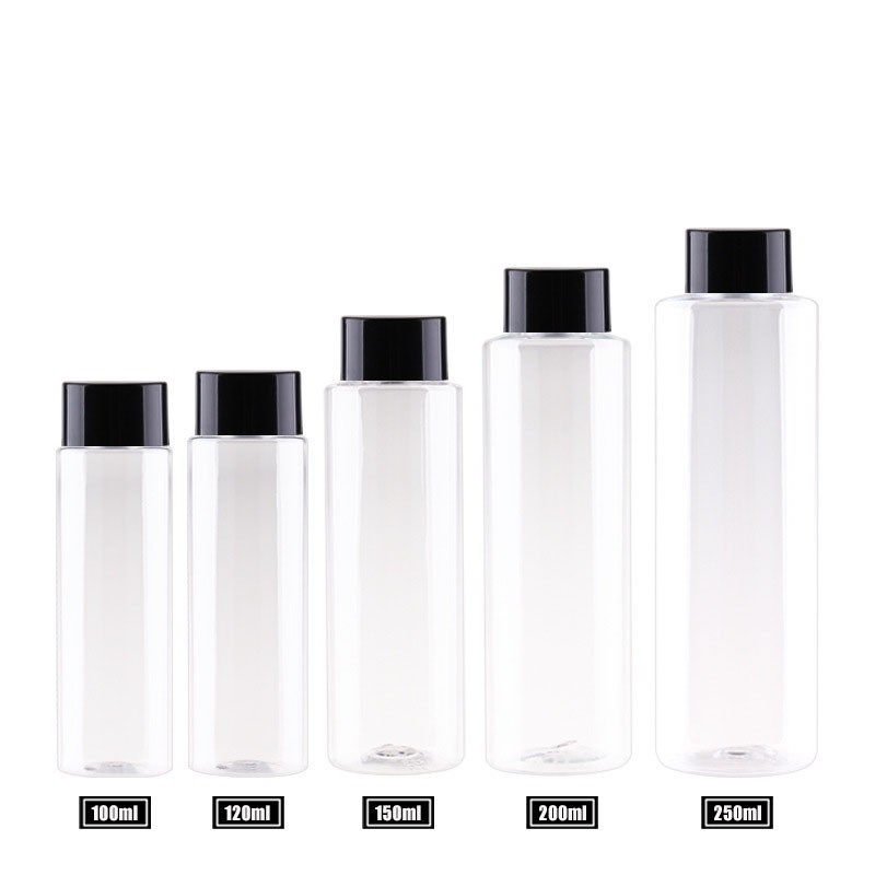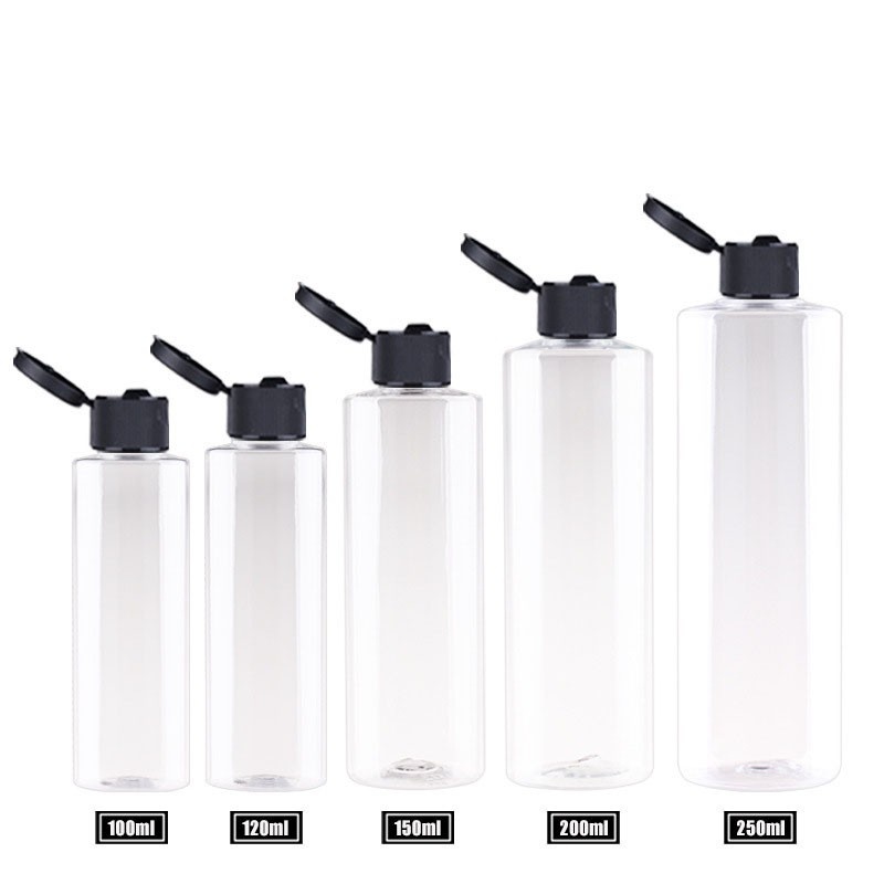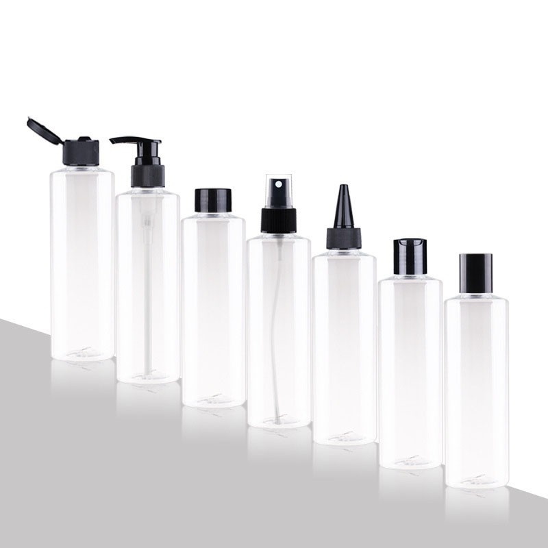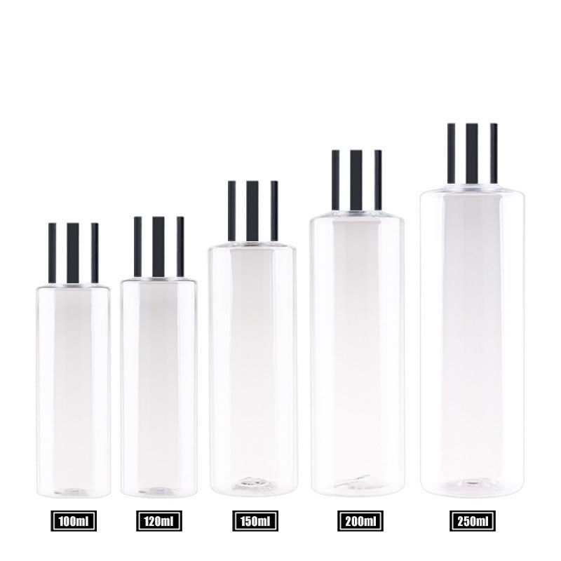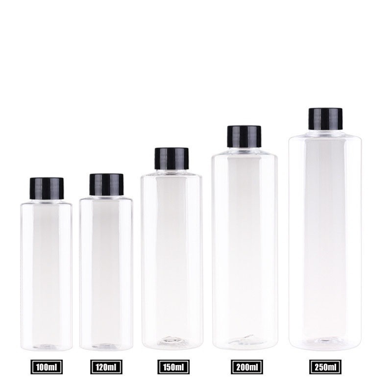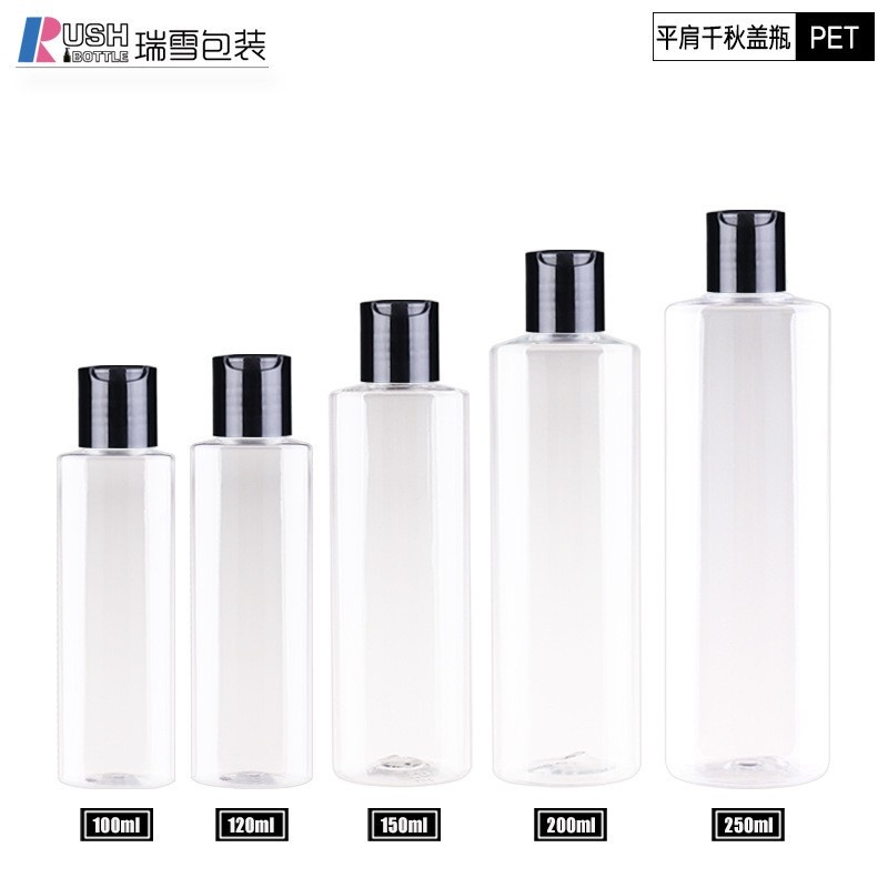Hot-selling 150ml-200ml flat-shoulder/round-shoulder PET bottles for cosmetics, shower gel, and shampoo.